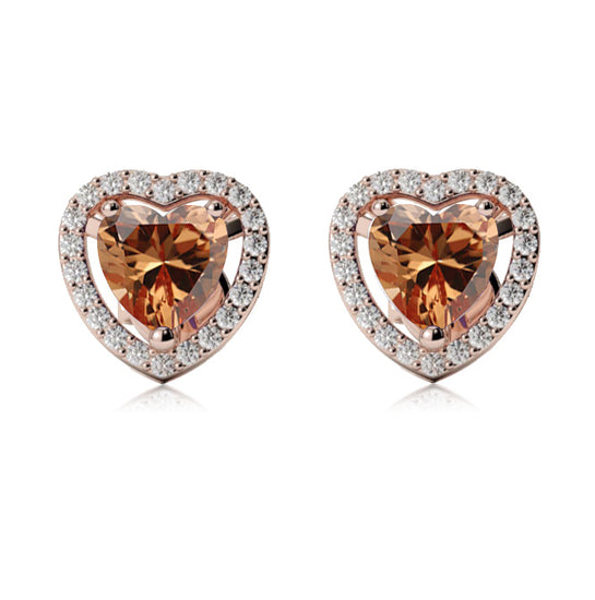 24k Rose Gold Plated 2 Ct Created Halo Heart Citrine Stud Earrings