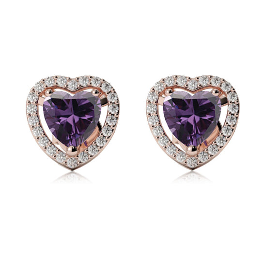 24k Rose Gold Plated 4 Ct Created Halo Heart Amethyst Stud Earrings