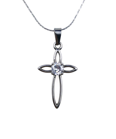24K White Gold 1/2ct Created Diamond Cross Stud Necklace Plated 18 inch