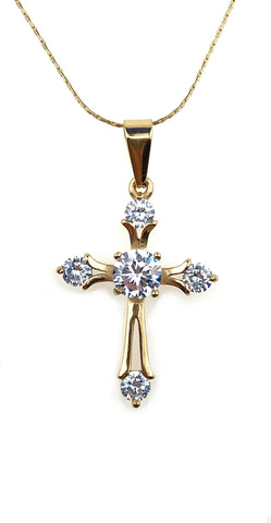 24K Yellow Gold 3 ct Created Diamond Cross Stud Necklace Plated 18 inch24K Yellow Gold 3 ct Created Diamond Cross Stud Necklace Plated 18 inch24K Yellow Gold 3 ct Created Diamond Cross Stud Necklace Plated 18 inch