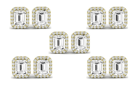 Paris jewelry 14k Yellow Gold 4Ct Emerald Cut White Sapphire Set Of Five Halo Stud Earrings Plated