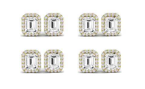 Paris jewelry 14k Yellow Gold 4Ct Emerald Cut White Sapphire Set Of Four Halo Stud Earrings Plated