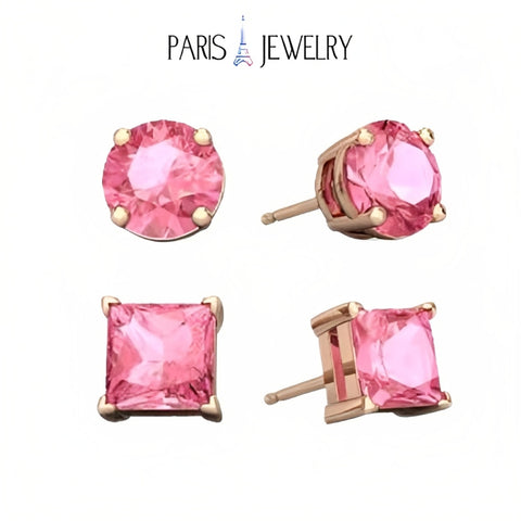 Paris Jewelry 18k Rose Gold 2 Pair Created Pink Sapphire 6mm Round & Princess Cut Stud Earrings PlatedParis Jewelry 18k Rose Gold 2 Pair Created Pink Sapphire 6mm Round & Princess Cut Stud Earrings PlatedParis Jewelry 18k Rose Gold 2 Pair Created Pink Sapphire 6mm Round & Princess Cut Stud Earrings PlatedParis Jewelry 18k Rose Gold 2 Pair Created Pink Sapphire 6mm Round & Princess Cut Stud Earrings Plated