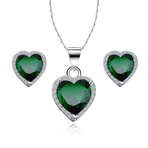 Necklace come elegantly gift boxed. This is amazing fashion style jewelry designed in France. It makes a great gift, perfect for special occasions, an anniversary gift or just to treat yourself. Paris Jewelry 18k White Gold Plated Heart 4 Carat Created Emerald Full Set Necklace, Earrings 18 Inch