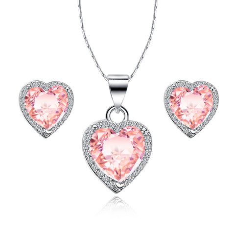 Necklace come elegantly gift boxed. This is amazing fashion style jewelry designed in France. It makes a great gift, perfect for special occasions, an anniversary gift or just to treat yourself. Paris Jewelry 18k White Gold Plated Heart 4 Carat Created Tourmaline Full Set Necklace, Earrings 18 Inch