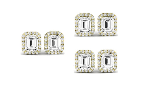 Paris jewelry 18k Yellow Gold 6mm 2Ct Emerald Cut White Sapphire Set Of Three Halo Stud Earrings Plated