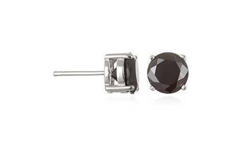 Rhodium Plated Round 8 Mm CZ Stud Earrings